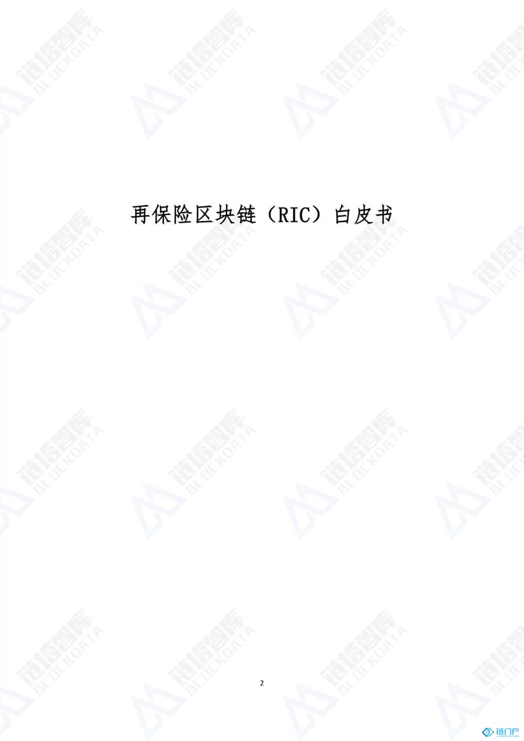 《再保险区块链(RIC)白皮书》全文发布