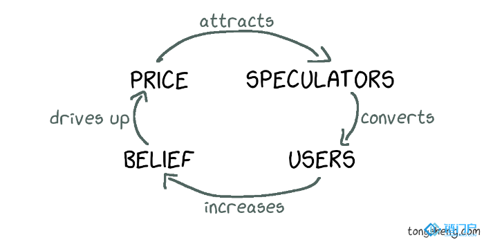 只有真正用户的增加,进一步增加市场的信心,还会强化加密货币参与者的信仰,进而能进一步推动价格上涨,同时推动这个「飞轮」进入正向转动的环节。