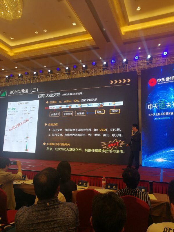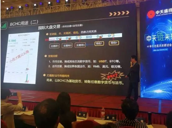 这一天,在广州天河区的希尔顿酒店,另一场名为“BCHC新老会员共识大会”的活动也在开展,与会者听着台上的人宣讲着区块链、特别是BCHC将改变财富分配的梦想。