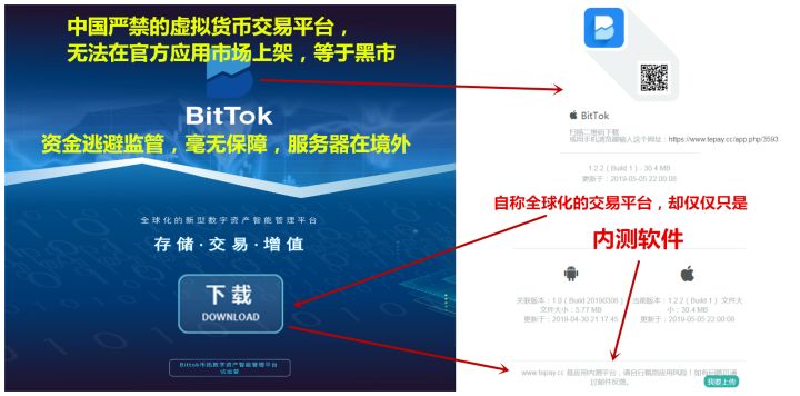 bittok币拓官网,没有任何介绍,给出的下载源头,只是一个内测应用平台