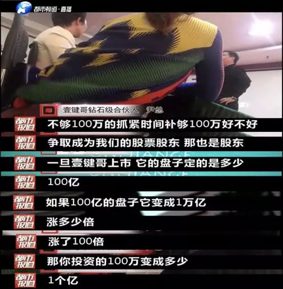 在这些洗脑会上,100万投资、1亿元回报吸引着与会者振臂高呼,购买二维码的投资者只等着壹键哥能够上市,他们便能坐享分红。