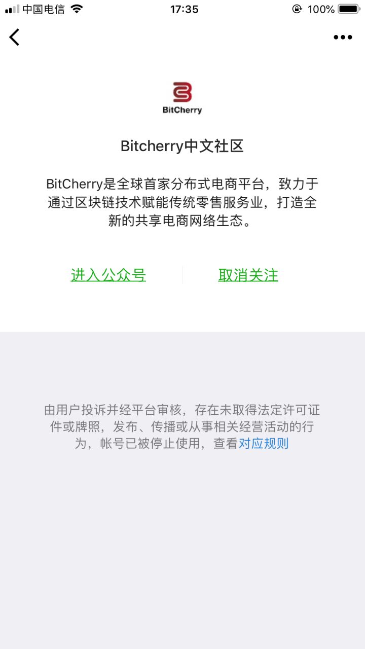 bitcherry、bittok、bitsuper官方公众号全部被封1、bitcherry、bittok、bitsuper都是一伙的,是中天盛祥的多地案发后的化身,打着区块链幌子,以BCHC这种虚拟货币来作为行骗的道具,属诈骗传销。前期失信多年,换汤不换药。