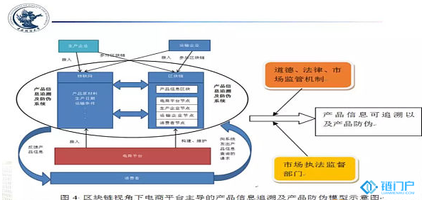 这个是我们主导的信息产品追溯和防伪模型,在这个模型里,左边对应刚才的三个层次:底层物联网,中间区块链,上层是电子商务交易平台;右半部分是在产品追溯交易过程中的管理机制。也就是,一旦出现各种各样的问题,我们如何将采用什么样的机制、制度去解决问题。这事我们设计的基本框架。
