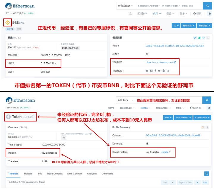 BCHC不过是一种0门槛,依附于以太坊平台的ERC20类代币,未经认证,自行对比,数据作假