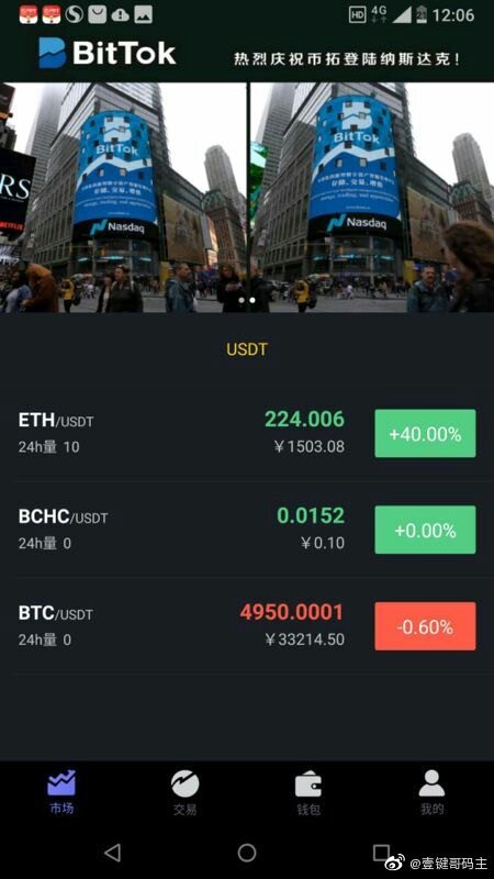 3、bittok上展示的行情,币的涨跌,交易量,都是人工操纵的结果,并非自然的市场行为,这一切,都只为诱骗他人购买USDT,去兑换豪无价值、不被币圈承认的BCHC。要区分,私搭平台,不代表市场。就好比,你自己搞一个股市,自己新建一种股票BCHC,和其他知名的股票同时展示在你自己搭建的股市里,虽然有行情,有买卖,但你随意设置你的股票BCHC的价格,真正的市场根本不知情。