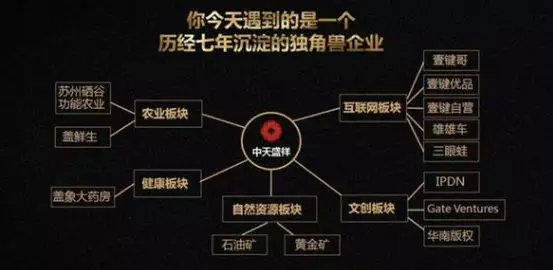 中天盛祥的版图中,这家自称为民族企业的公司旗下还涉及农业、健康等多个板块。