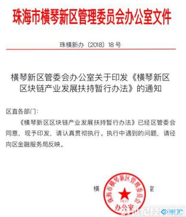 早在2018年10月,横琴新区管委会办公室就正式对外发布了《横琴新区区块链产业发展扶持暂行办法》,要求大力发展横琴新区区块链技术,推动粤港澳大湾区区块链技术创新,支持区块链技术应用和发展。